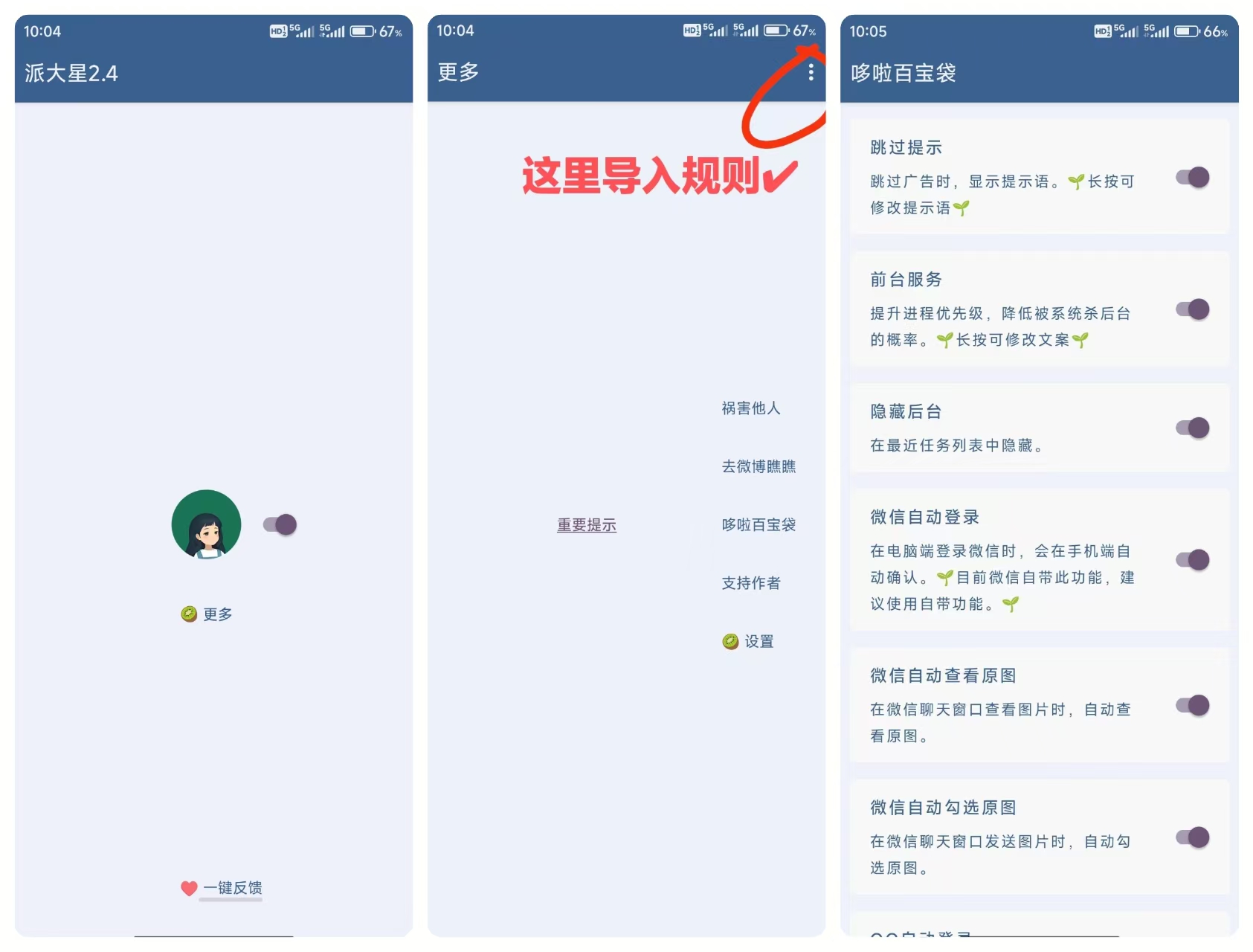 最新版李跳跳 2.4 安卓 附加5052条规则+使用方法🔥安卓手机必备! [ 3MB ] 栏目:软件区 作者:零距 时间:2025-02-08 08:59:02   **软件简介:** 李跳跳是一款可以跳过开屏广告的安卓手机软件工具。其范围广、精确高、有效“干掉”广告的特点受到众多网友好评,被戏称为“互联网药神”。 **规则使用方法:** 打开规则文件,长按输入框,调动系统自带的粘贴功能复制规则 **注意事项:** 1、不要使用输入法复制,输入法的复制字数有上限,复制的内容不完整 2、规则分为两个文件,两个文件的内容是一个整体,一定要都放进去拼接好在导入,不然会导入失败 > [!success] **资源链接** > [https://pan.quark.cn/s/9ec01b9ec54f](https://pan.quark.cn/s/9ec01b9ec54f "https://pan.quark.cn/s/9ec01b9ec54f") 版权声明:本站不存储任何实质资源,该帖为发布的网盘链接介绍帖。如您认为本站任何介绍帖侵犯了您的合法版权,请联系站长 ( 微信:lizzylxh ) 进行投诉,我们将在确认本文链接指向的资源存在侵权后,立即删除相关介绍帖子!
