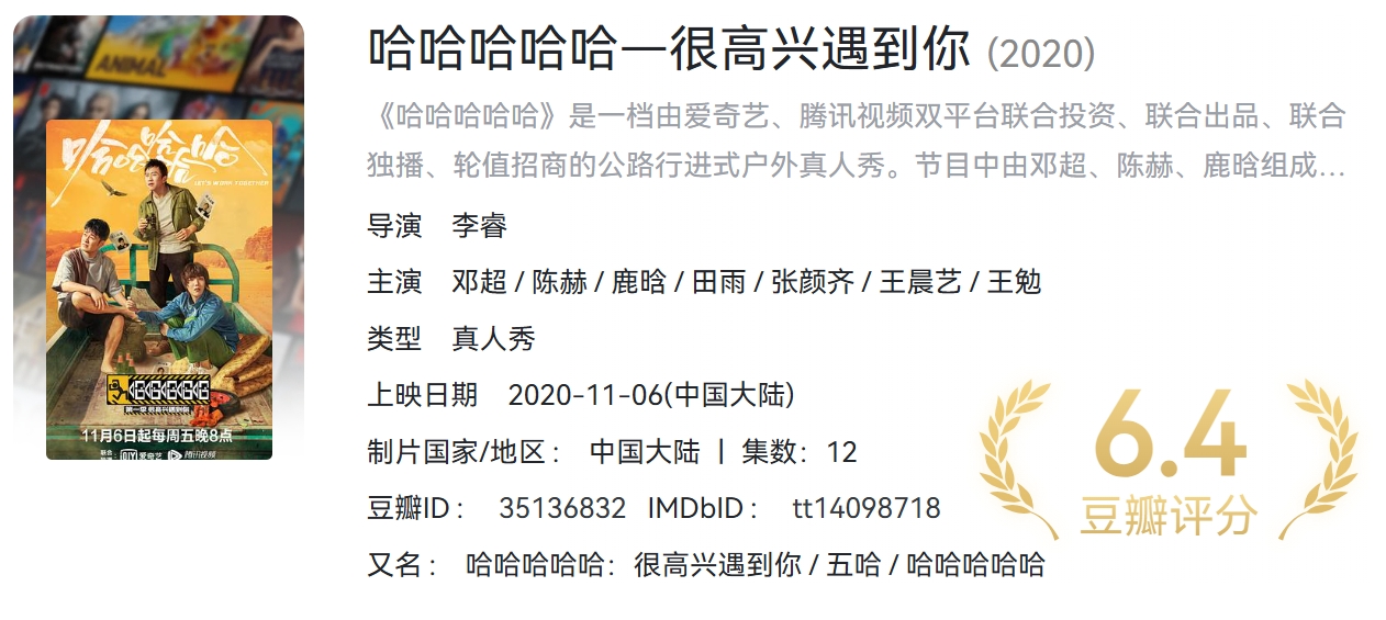 哈哈哈哈哈 第五季(持续更新中)合集 4K 国语中字 附1-4季 【约181.4GB】 栏目:综艺区 作者:零距 时间:2025-03-27 16:30:44   **简介:** 五哈系列综艺,影视平台付费节目,这里持续更新。。。 > [!success] **资源链接** > [https://pan.quark.cn/s/d5ba822d6056](https://pan.quark.cn/s/d5ba822d6056 "https://pan.quark.cn/s/d5ba822d6056") 版权声明:本站不存储任何实质资源,该帖为发布的网盘链接介绍帖。如您认为本站任何介绍帖侵犯了您的合法版权,请联系站长 ( 微信:lizzylxh ) 进行投诉,我们将在确认本文链接指向的资源存在侵权后,立即删除相关介绍帖子!