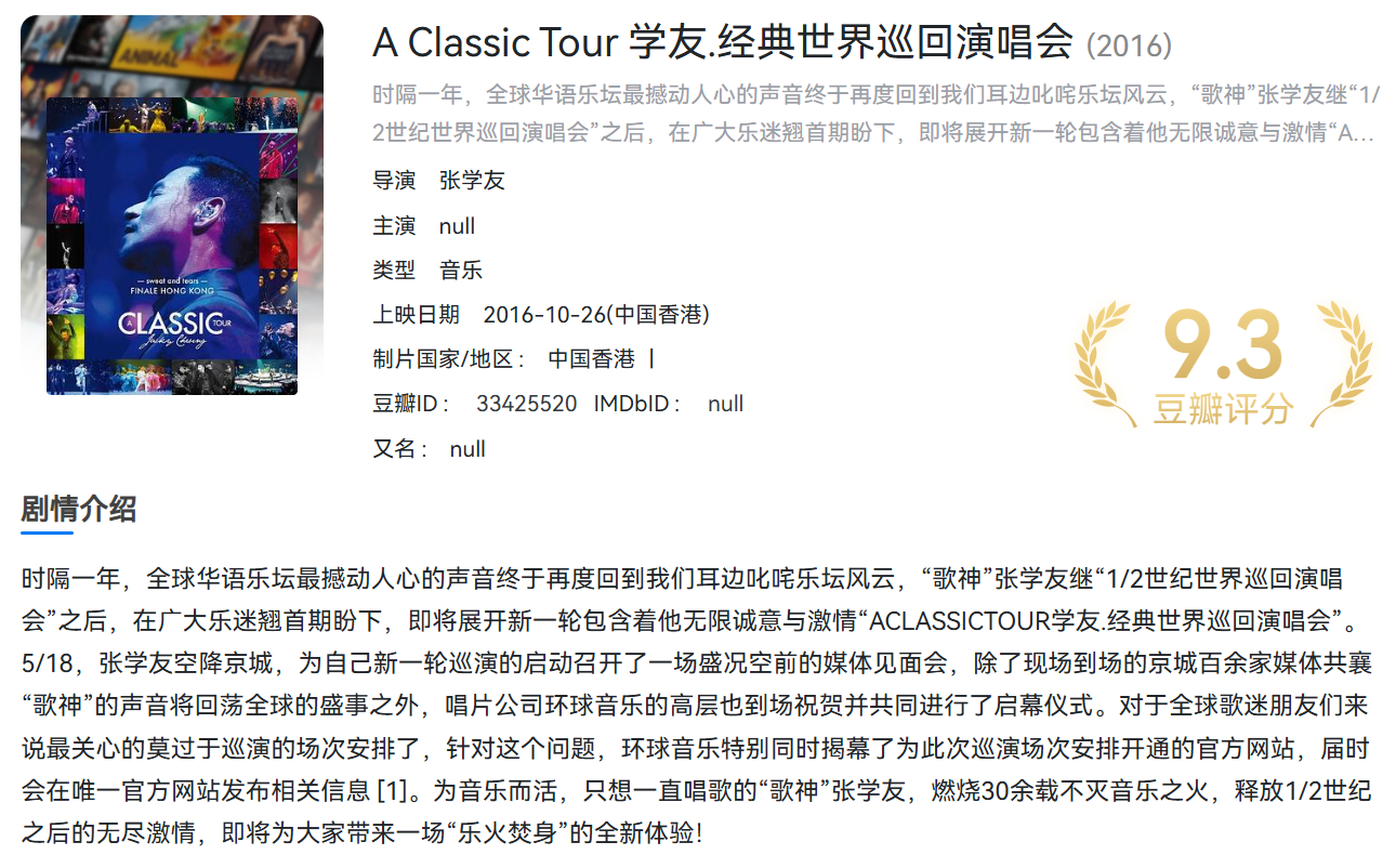 张学友演唱会 2007-2019 Bluray REMUX 1080i AVC 共6场演唱会【249.6GB】 栏目:杂烩区 作者:零距 时间:2025-06-29 14:09:02   **简介:** 张学友演唱会6场高清实录,稀缺资源,就快绝版了,想要的赶紧转存,不然后面哪天就找不到了! > [!success] **资源链接** > [https://pan.quark.cn/s/461432c93c7c](https://pan.quark.cn/s/461432c93c7c "https://pan.quark.cn/s/461432c93c7c") 版权声明:本站不存储任何实质资源,该帖为发布的网盘链接介绍帖。如您认为本站任何介绍帖侵犯了您的合法版权,请联系站长 ( 微信:lizzylxh ) 进行投诉,我们将在确认本文链接指向的资源存在侵权后,立即删除相关介绍帖子!