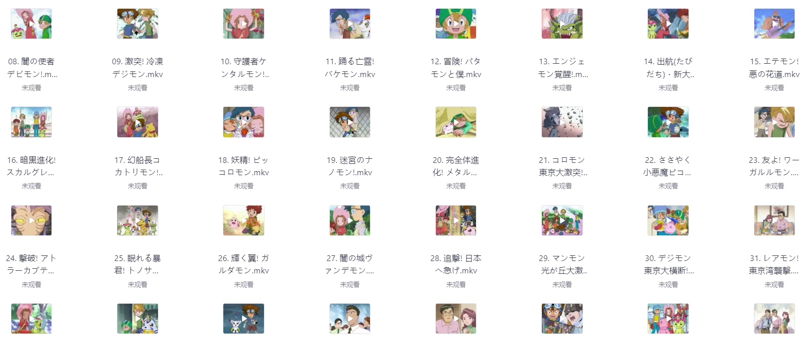 数码宝贝(1999) S01-S08季.1080p.国粤日三语版+剧场版+OVA共10部 栏目:动漫区 作者:零距 时间:2025-01-07 09:05:03    **简介:** **名称:**数码宝贝 デジモンアドベンチャー **导演:**细田守 **编剧:**本乡昭由,西园悟,雅木宏,前川淳 **主演:**藤田淑子,风间勇刀,水谷优子。天神有海 **类型:**动作,动画,惊悚,家庭,奇幻,冒险 **制片地区:**日本 **上映时间:**1999-03-07(日本) **影视语言:**日语 **评分:**9.5 **剧情简介:** 1999年,由于数码世界资料异常增生,导致数码世界和现实世界的连接发生紊乱。地球上相应地出现奇怪的自然现象:东南亚没有下雨,池塘全部干涸;中东却因为连场大雨发生洪水;美国则遇到有史以来最寒冷的冬天。11岁的少年八神太一(藤田淑子配音),和伙伴石田大和(风间勇刀配音)、武之内空(水谷优子配音)、泉光子郎(天神有海配音)、太刀川美美(前田爱配音)、城户丈(菊池正美配音)、高石武(小西寛子配音)一起参加了夏令营,一次意外却被神秘地送到了一个多彩的数码世界。在那里,他们得到了叫做“数码宝贝”的搭档。进入数码世界后,八神太一一行人遇到了凶恶的怪兽贝壳兽,眼看大家都要被抓住的时候,太一的亚古兽忽然进化成为暴龙兽,拯救了他们。进化到底是怎么回事情?数码世界究竟是什么?无数的谜团出现在被召选的小朋友们面前,精彩的冒险就这样开始了…… > [!success] **资源链接** > [https://pan.quark.cn/s/96ea26cce6c5](https://pan.quark.cn/s/96ea26cce6c5 "https://pan.quark.cn/s/96ea26cce6c5") 版权声明:本站不存储任何实质资源,该帖为发布的网盘链接介绍帖。如您认为本站任何介绍帖侵犯了您的合法版权,请联系站长 ( 微信:lizzylxh ) 进行投诉,我们将在确认本文链接指向的资源存在侵权后,立即删除相关介绍帖子!